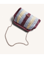 Bolso de formato compacto con diseño trenzado y patrón a rayas que aporta textura y un estilo desenfadado. Cuenta con solapa y cadena metálica para llevarlo cómodamente al hombro o cruzado.