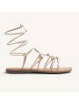 Cuenta con cierre mediante lazada larga para ajustar alrededor del tobillo y la pierna, permitiendo una sujeción personalizada y un efecto estilizado. La planta acolchada y la suela fina la convierten en una opción cómoda y versátil, ideal para elevar cualquier look de verano con un toque chic.