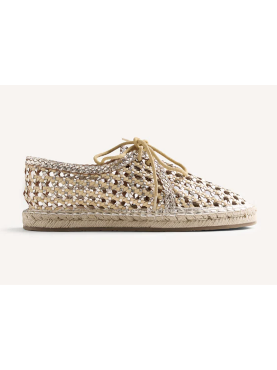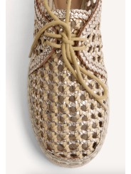 Zapato tipo blucher con diseño calado y acabado trenzado. Incorpora cierre con cordones, estructura ligera y suela flexible que favorece la comodidad y la transpirabilidad.